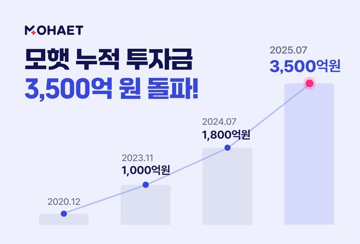 에너지 투자 플랫폼 ‘모햇’이 누적 투자금 3500억원을 돌파했다고 23일 밝혔다. 이는 지난 4월 3000억원을 넘어선 지 불과 3개월 만의 성과로,모햇의 가파른 성장세를 다시 한 번 입증했다.