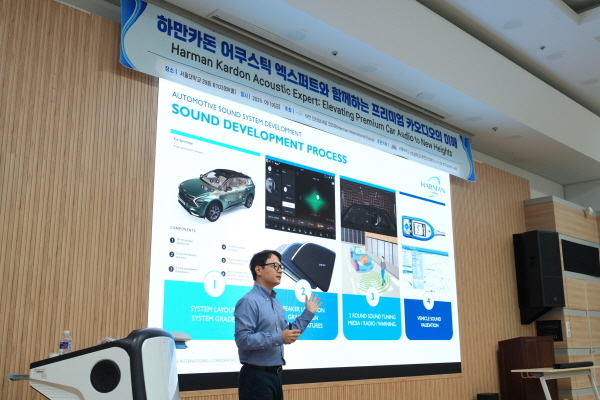 하만코리아,서울대서 ‘하만카돈 프리미엄 카오디오의 이해’ 강좌 [사진 제공=하만코리아] 행사에는 하만코리아 ‘어쿠스틱 시스템 엔지니어링(ASE)’ 팀의 이정환 프로가 글로벌 하만카돈 어쿠스틱 엑스퍼트로서 브랜드 특징,사운드 시스템 설계,카오디오 튜닝 과정을 소개했다. 하만 ASE 팀은 차량 내부 음향 환경을 연구하고 스피커,앰프,소프트웨어 알고리즘 등을 설계해 고객사에 최적의 사운드를 제공하는 핵심 조직이다.
