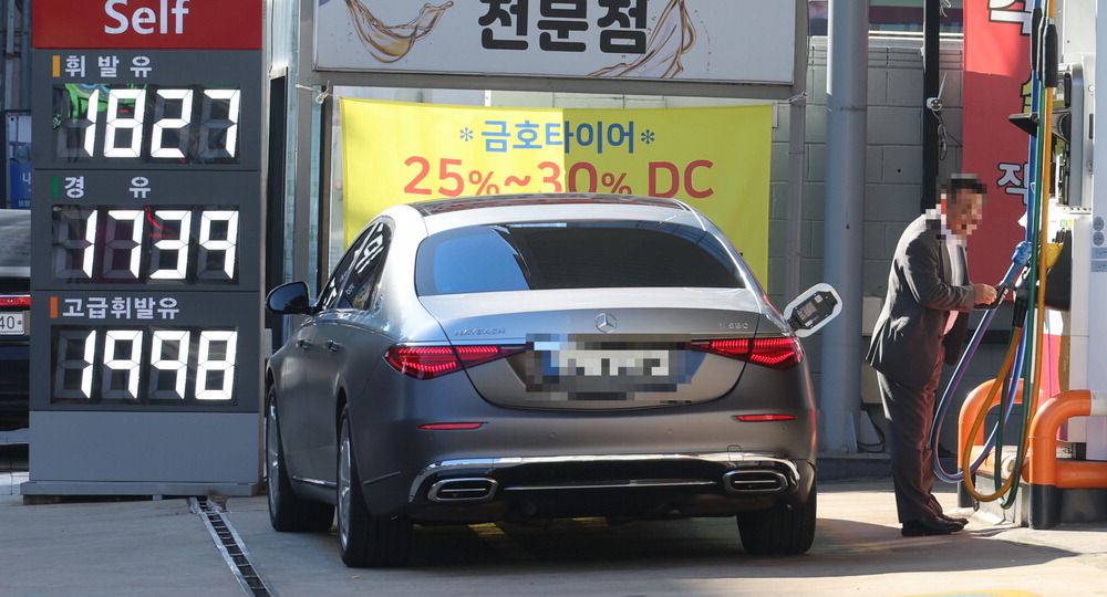 21일 서울시내 한 주유소에 휘발유 가격 1827원을 알리는 팻말이 붙어 있다. 이날 한국석유공사 유가정보시스템 오피넷에 따르면,전날 전국 주유소의 휘발유 평균 판매가는 ℓ당 1736.46원으로 올해 최고치인 1733원을 뛰어넘었다. 유가가 오르면 물류비·유통비가 연쇄적으로 상승할 가능성이 있다. 이승환 기자