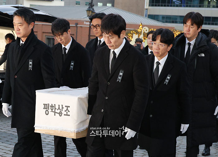 #정우성-이정재,안성기 영정과 훈장 들고