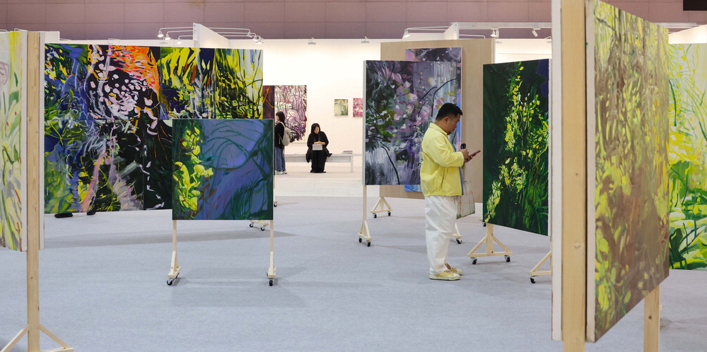 전시장 한복판에 자리 잡은 이 부스는 대형 회화 10여 점을 벽면이 아닌 이동형 나무 패널에 설치하는 파격적인 시도를 선보였다. 관람객들은 캔버스 사이를 자유롭게 거닐며 작가의 자유분방한 회화 세계를 가까이서 만끽했다.